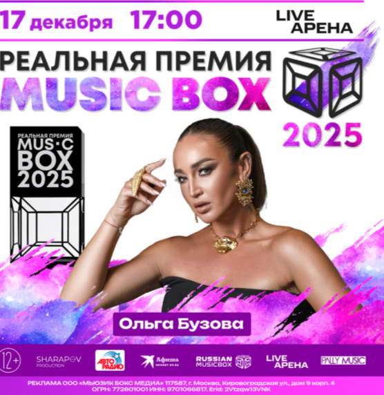 17 декабря 2025 года в LIVE ARENA состоится яркое музыкальное событие — «РЕАЛЬНАЯ ПРЕМИЯ MUSICBOX». Организаторы премии — SHARAPOV PRODUCTION и телеканал RUSSIAN MUSICBOX — готовят незабываемый вечер, наполненный...