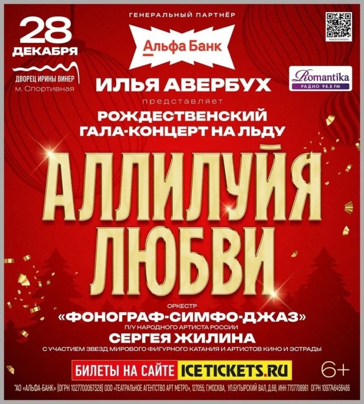 Премьера нового рождественского шоу Ильи Авербуха “Аллилуйя любви” состоится 28 декабря во Дворце гимнастики Ирины Винер. Этим масштабным спектаклем знаменитый режиссер поздравляет всех любителей фигурного катания с наступающим Новым годом.