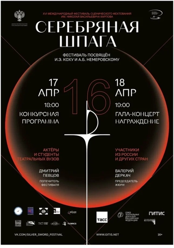 Международный фестиваль «СЕРЕБРЯНАЯ ШПАГА» – единственный в мире профессиональный фестиваль сценического фехтования – в 2026 году пройдёт 17, 18 апреля в Москве на новой сцене учебного театра ГИТИСа!