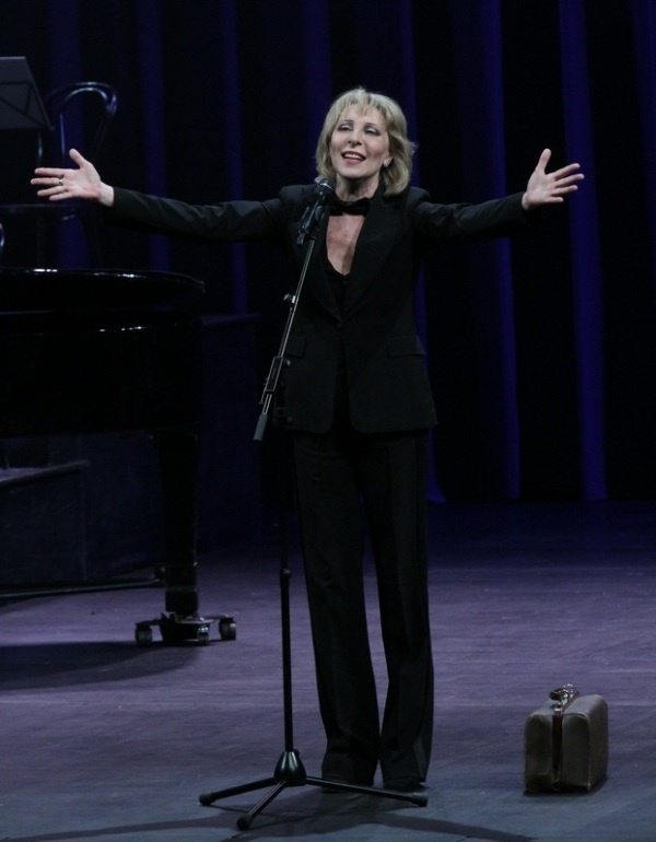 А начинался Юбилейный вечер «Вся эта суета» стихотворением «песня» в исполнении непревзойденной Юлии Рутберг, которая «презентовала» преданной публике спектакль-концерт в честь своего 60-ти летия. Под аккомпонимент (музыка Нино Рота) виртуозов Алексея Воронкова, Николая Мызикова и Евгения Полторакова на заднике сцены кадры с детскими фотографиями будущей ПРИМЫ Вахтанговского театра. И тут в лучах софитов на легендарный подмостки выход сама виновница торжества с песней «Куда ты скачешь мальчик?». Зал овациями и криками «Браво!» встречает Юлию Рутберг.