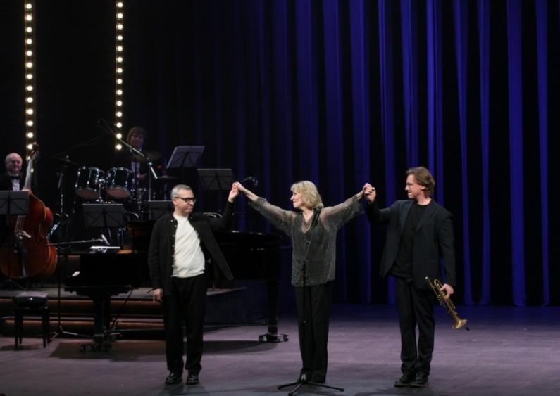 Гитарист Михаил Савичев «окунул» Вахтанговский театр и его зрителей в «испанские страсти», а трио музыкантов (пианист, контрабасист и ударник – о них в начале репортажа) представили «Джазовую импровизацию». После песни «Hello, Dolly!» Юлия из своего саквояжа зачитывает записки с вопросами, которые пришли из зала. Один из них – о родителях, на которые героиня вечера пообещала ответить в конце спектакля-концерта. Музыкальные поздравления Юбилярше продолжили Вероника Кожухарова (саксофон), Алексей Каляпичев (фортепиано) , Искандаржон Ахмедов (скрипка), Никита Кейман (альт), Вероника Рощина (скрипка) и Олеся Саблина (виолончель).