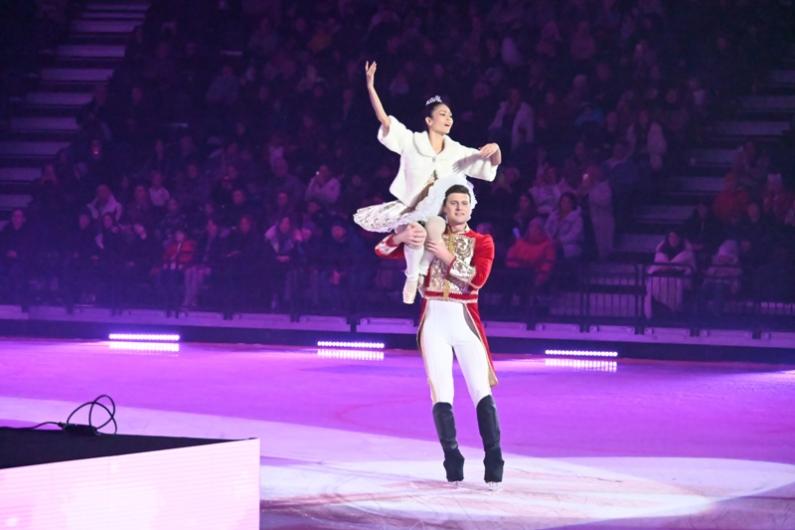 Когда зазвучала музыка знаменитого Адажио я предположила, что на льду появятся Мари и Щелкунчик, но... Выехали воздушная гимнастка Виктория Жуковцева и Фриц - Дмитрий Лапшин. Номер на полотнах был невероятно красивый, но все-таки под эту музыку хотелось дуэта главных героев. Они выехали в конце адажио, но отрываться от "воздушного" балета не хотелось. Кстати, я обратила внимание, что и взгляды всех сидевших рядом также были прикованы к тому, что происходило в воздухе, а не на льду.