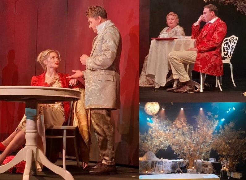 Роман Самгин поставил живой, приятный, легкий спектакль, иронически обыграв даже драматические моменты исходного текста, - и можно понять, почему сам автор так любил это свое произведение и даже периодически играл роль Желтухина, причем и после революции, когда все князья (которые не успели бежать за границу) были переведены в разряд «бывших людей», а все поместья захвачены. Хорош актерский состав, Алина Ланина в роли Маши настоящая роковая красавица, Евгений Козлов и Александр Львов справились с неоднозначными ролями, не превращая их в карикатуры и не утрируя. Сценография Юлианы Лайковой словно подчеркивает ностальгию по прошлому золотистыми тонами оформления и особенно золотыми деревьями, которые присутствуют на сцене: было время золотое, было и прошло. Впрочем, в любое время чувства людей не меняются – и об этом в том числе написал свою комедию Алексей Толстой.