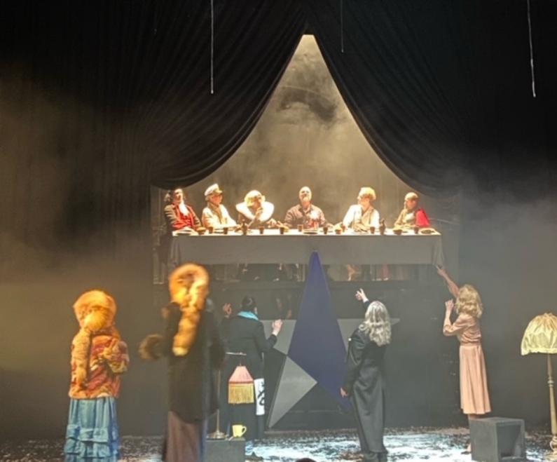 А в конце на сцене возникает инсталляция «Тайная Вечеря». Артисты замирают в костюмах из разных эпох, и над ними - в воздухе, без тросов, без видимых спецэффектов - парит Юрий Грымов. Гравитация берет выходной.